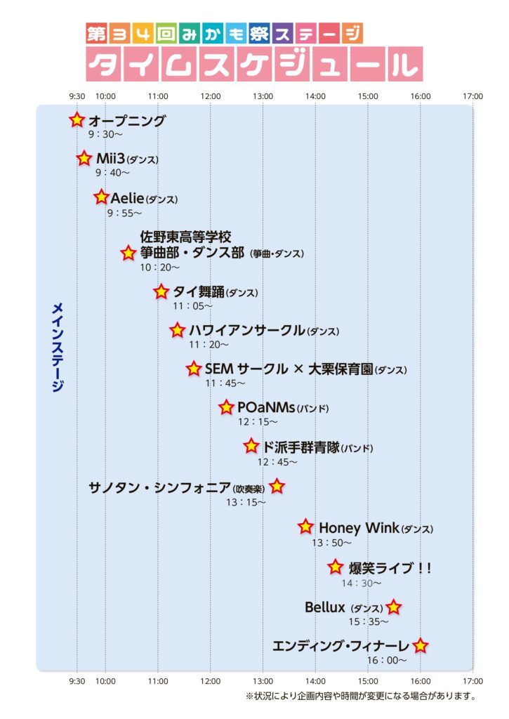 今年のみかも祭は、ステージパフォーマンスや模擬店、自衛隊の展示、佐野市の名産販売などイベント盛りだくさんです!